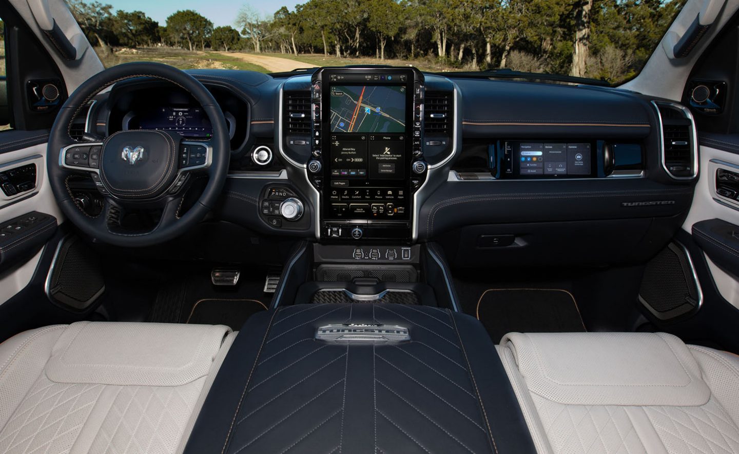 La totalmente nueva RAM 1500 Tungsten 2026 está a punto de llevar tus expectativas al siguiente nivel con asientos en piel de primera clase, detalles en madera real y fibra de carbono, bocinas de metal brillante, un techo interior de gamuza y funciones de cancelación de ruido en toda la cabina. Estas características hacen de RAM 1500 Tungsten 2026 la RAM más lujosa de todos los tiempos.